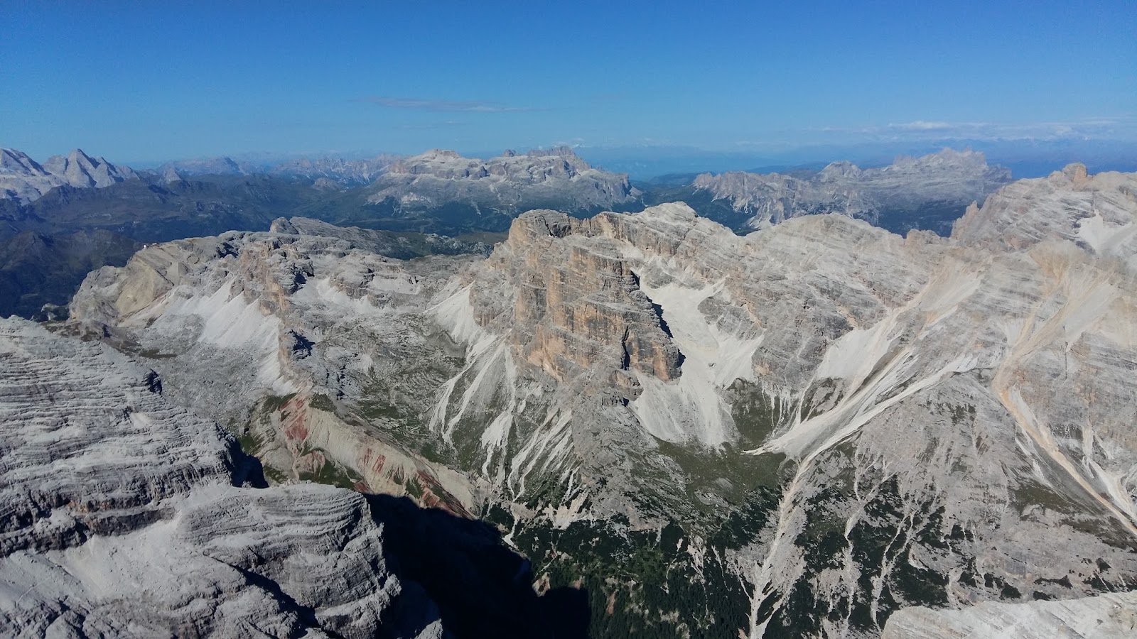 Widoki zachwycające. Mimo, że jesteśmy w bliskim sąsiedztwie Tofany di Rozes, na której szczycie staliśmy wczoraj (Tofana di Rozes) to jednak panorama ponownie nas zdumiewa. Przede wszystkim mamy świetny widok na wszystkie strony świata (również na wschodnią stronę, która podczas naszej wizyty na Tofanie di Rozes, tonęła w chmurach).